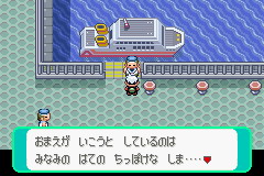 大家还记得,在红蓝宝石里有个混合记录的通信设施吧?这次绿宝石可以跟红蓝宝石混合记录。要做的就是跟拥有[能去南岛的神秘船票]的红蓝宝石的存档混合记录,这样绿宝石这边就会得到船票了。 现在模拟器可以通信了,相信这步不难吧,就在精灵中心二楼。
