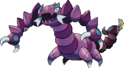 ドラピオン是可变形的蝎子精灵,属性为毒+邪恶(只被地面系克制,相当良好的属性组合,但看外形是那种速度慢攻击高的类型).特性是甲虫盔甲,或是スナイパー(狙击),后者在打出会心一击时可以增加蝎子技能的威力.蝎子会一个名叫クロスポイズン(交叉毒击)的新技能,容易打出会心一击,也有几率令对方中毒,还能学会剧毒牙.
