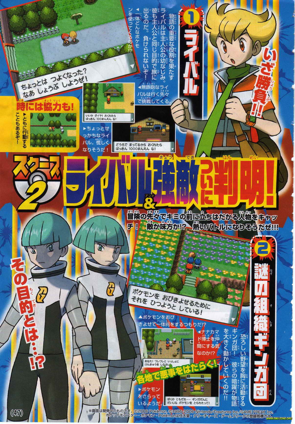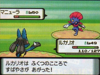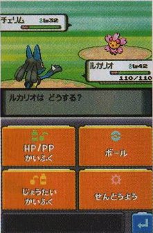 此外: 巨翅飞鱼的退化小球飞鱼是水+飞行的属性,特性是轻快或蓄水. 音符鹉是普通+飞行属性(这个....以前传言说是纯飞行系的...).特性是锐利眼睛,或ちどりあし(不定舞步),在陷入混乱时可以提升回避率. 鲁卡力欧的特性是精神力或者是とくせい(虚心),后者令其在害怕时提升速度(前者是不害怕,后者是害怕时加速....一个是无畏,一个是逃兵).鲁卡力欧会一个新的格斗系攻击技能叫做はどうだん(波导弹).它也能学会见切和电光石火. 刚比有一个招式(刚才翻成特性= =)是しぜんのめぐみ(自然冲刺).....根据刚比持有的果实来改变这个技能的属性和威力(貌似很有趣的一个招式....天下无奇不有...). 玛狃拉会一个新技能さしおさえ(冰封),可以令对方的手持道具无效化. 水獭可以使用アクアジェト(水之喷射),是属于先制攻击的技能. 本作的反派是ギンガだん(银河队),他们会到处偷取精灵,还会企图结交拉拢博士.(...变聪明了) 除了那个异性外,你还有另一个竞争者,他是你童年时的对手.他有时性情鲁莽,但会一直帮助你.(这翻译也可能有错...) PC地下的建筑是无线连机时用的(Wi-fi功能),可以利用朋友密码. 底屏是战斗菜单... 战斗时,背包分类是:HP/PP回复类,精灵球,状态恢复类,战斗使用类.