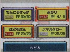 选择攻击画面 4个技能为电光石火,见切,波导弹和合金爪,注意波导弹的PP为20