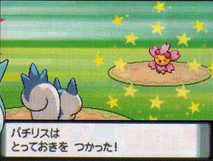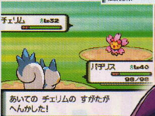 对比2幅图可以看出チェリム似乎具有在晴天中变身的能力,类似宝石版的天气泡泡