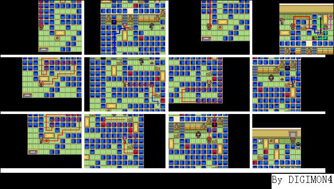注意: (路线)第一次为红色,第二次为蓝色,第三次绿色,第四次黑色,第五次紫色 拿道具的是浅蓝色