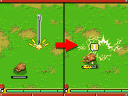 <------电 特效:可以使用电击攻击小精灵使其成为麻痹状态. 使用方法:用笔点击触摸屏,随即在该点出现电击,若命中小精灵便可造成伤害并产生特效. 伤害修正:电击攻击---3,画圈---1.