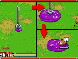 <------毒 特效:可以使用毒液攻击小精灵使其成为无力状态,对飞行系和漂浮类小精灵无效. 使用方法:用笔点击触摸屏,即会形成毒液,若小精灵踩中便产生特效.可以通过增加接触时间使毒液范围增大. 伤害修正:画圈---1,无属性修正.