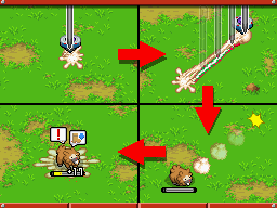 <------飞 特效:可以使用旋风攻击小精灵. 使用方法:用笔在触摸屏上画圈,圈中心会产生旋风,继续画圈使旋风变大直至画满5圈.之后再画圈,旋风便会向四面八方旋转出去,碰到小精灵便造成伤害.需要注意的是,画出的每个圈必须始终围着最初那个旋风方可持续下去. 伤害修正:旋风攻击---0.33,画圈---1.
