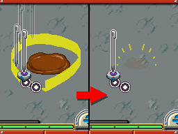 <------恶 特效:可以使地上的干扰物质消失. 使用方法:用笔在触摸屏上画圈,圈住干扰物质即可让其消失. 伤害修正:画圈---1.