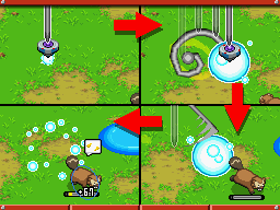 <------虫 特效:可以使用粘性物质攻击小精灵使其成为钝足状态. 使用方法:用笔点击触摸屏,会产生粘性物质,继续笔移动可拉成线状,松开笔粘性物质便会向反方向弹出.击中小精灵便可造成伤害并产生特效. 伤害修正:粘物攻击---0.5,画圈---1.