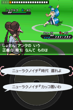攻略:这次我方有三只纽拉,再看对方只有可怜的一只小虫子,为啥是这货?因为要利用对方的挣扎来灭你 我方的第一只纽拉由于是唯一会变化技的角色所以请放在最后被灭掉