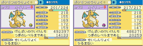 是两只快龙,等级相同,都是73级,大家看看它们的能力值: