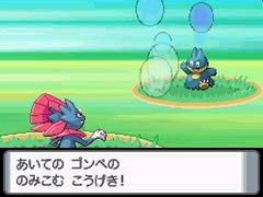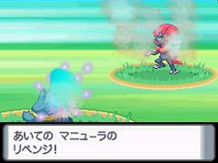 (图四) 这页介绍玛狃拉的小档案 注目点: *画面中玛狃拉使出「报仇」来反击小卡比兽! *特性是压力 此外钻石珍珠版跟以前的卡匣还是可以互相连动通信喔! 只要满足游戏中的条件,那么红蓝绿宝石、火红叶绿都可以插入第二个插槽里喔