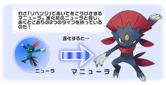 ぶんるい :かぎづめポケモン タイプ :あく こおり とくせい :プレッシャー たかさ :1.1m おもさ :34.0㎏