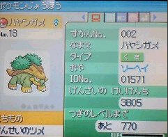 草主角的进化体Hayashigame,002号.纯草系,发芽特性.Lv18这个应该是进化等级.身上道具是先制爪,初期就能得到一个不错的道具.