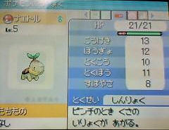 5级的草主角,有兴趣的话可以从能力推算一下种族值.