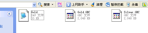 3、先讲一下模拟器存档的方法如图 比如说这是我放游戏ROM(*.GBC/GB文件)的文件夹,如图,如果我用游戏自带的存档的话,在同一个文件夹下就会产生一个与ROM文件同名的存档文件(*.sav)。下面做得很简单