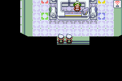 第一步,自然是去PC屋的2楼.和最右边的柜台服务员对话(如果你的游戏是红蓝宝石版本,那么这个混合存档的柜台是独立的,也是最右边的那个...) 当然,在第一步之前的通信准备工作(包括模拟器的各种设置,或者卡带玩家对于掌机外设备的要求,我想不应该再重复了吧!)