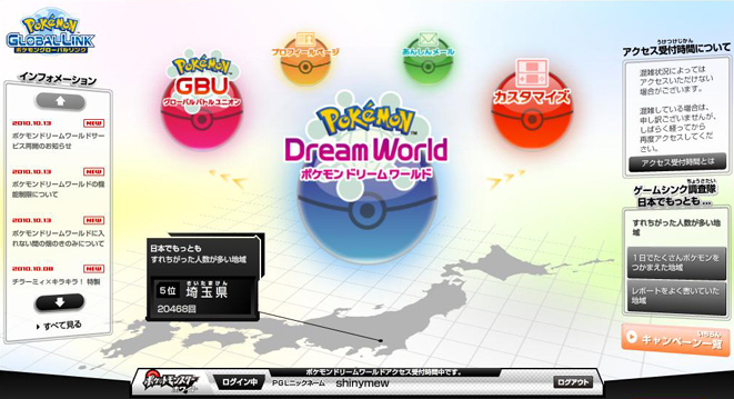 蓝色球(Dream World 梦世界),最重要的东西了~ 紫红色球(Global Battle Union 全球对战联盟),查看对战成绩什么的。 橙色球(Profile Page 个人资料界面),可以设置头像、绑定卡带、切换进入梦世界的版本等等。 绿色球(安心邮件?邮件和安心有啥关系= =),可以和朋友收发邮件。 红色球(Customize 个性化定制),可以更换C齿轮、图鉴、音乐剧场的背景。 右下方有一个キャンペーン一覧,列出了最近正在进行的一些活动,目前人气PM的投票结果出来了,那么大家快去领取CNM吧……暗号是さばきのつぶて,2011年1月31日17:00截止。还有コロコロ杂志赠送的毒手特性不良蛙,暗号是コロコロであおう,11月19日23:59截止。