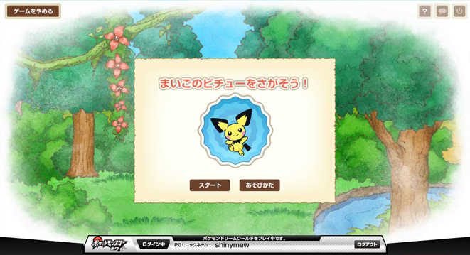 寻找PM: 在限定的时间内找到图片中的PM,一共有森林、海底和天空三种地形。 要不停地切换地图,查看树丛、岩石、云朵之类的,运气好很快就能找到,运气不好…… 虽然右下角有听PM声音的提示,不过本人试验下来觉得这反而会浪费时间,要是手快的话时限内基本可以翻遍整个地图。 捡到一个道具+5000分~