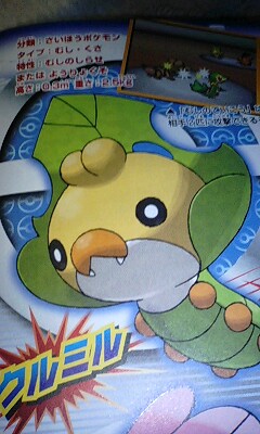 名称:クルミル クル(缠绕)+クルミ(包,小被子) 属性:虫+草 分类:缝纫口袋妖怪 特性:虫族警报 或者 叶绿素 新技能:むしのていこう(虫之抵抗):可同时攻击两只PM