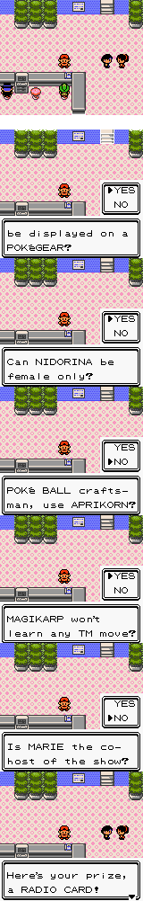 广播卡:跟右边这位小姐说话回答问题获得收音卡。答案是——是——否——是——否,中日文次序相同。收音卡在神奇齿轮里(即打电话、看地图的装置)